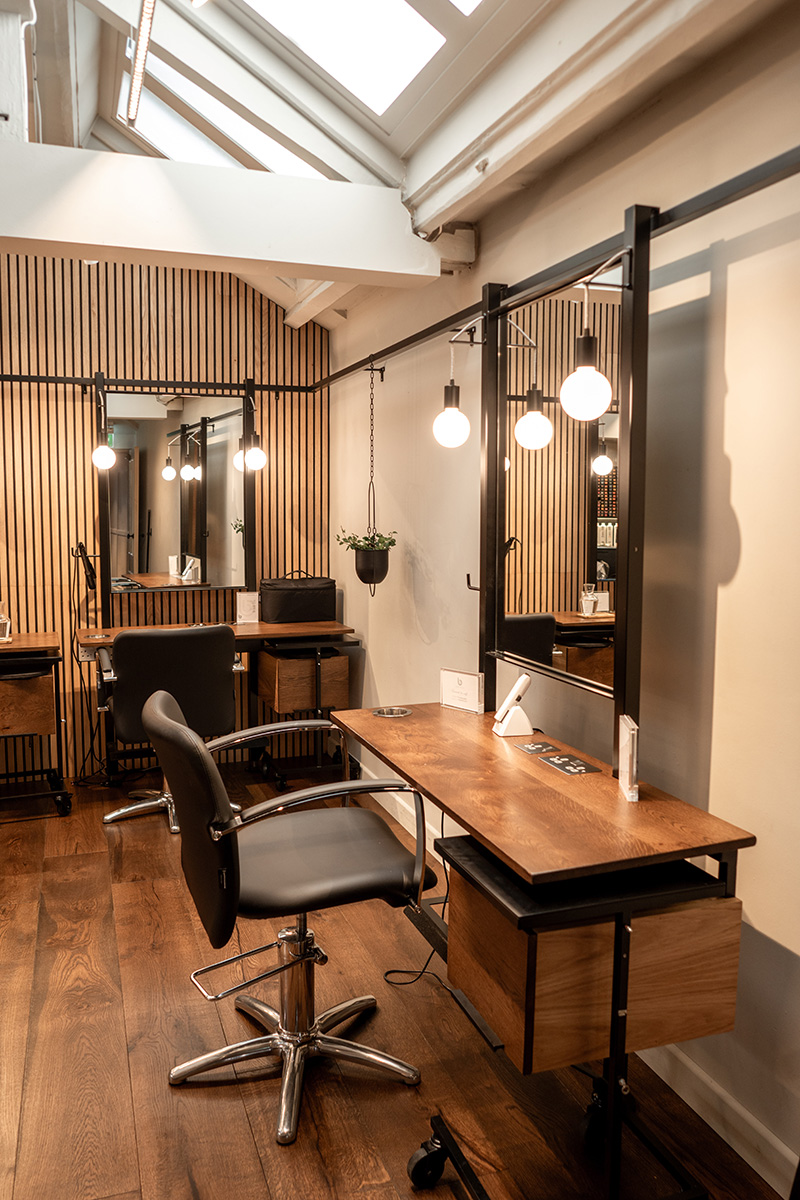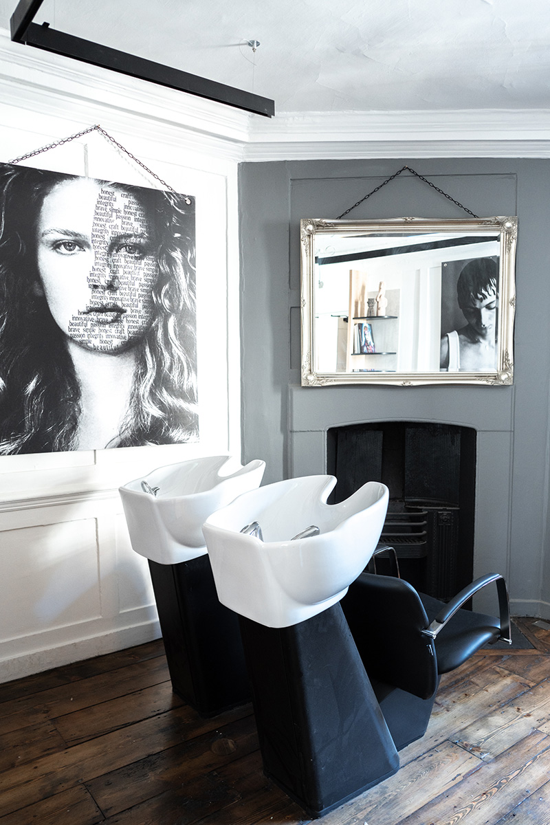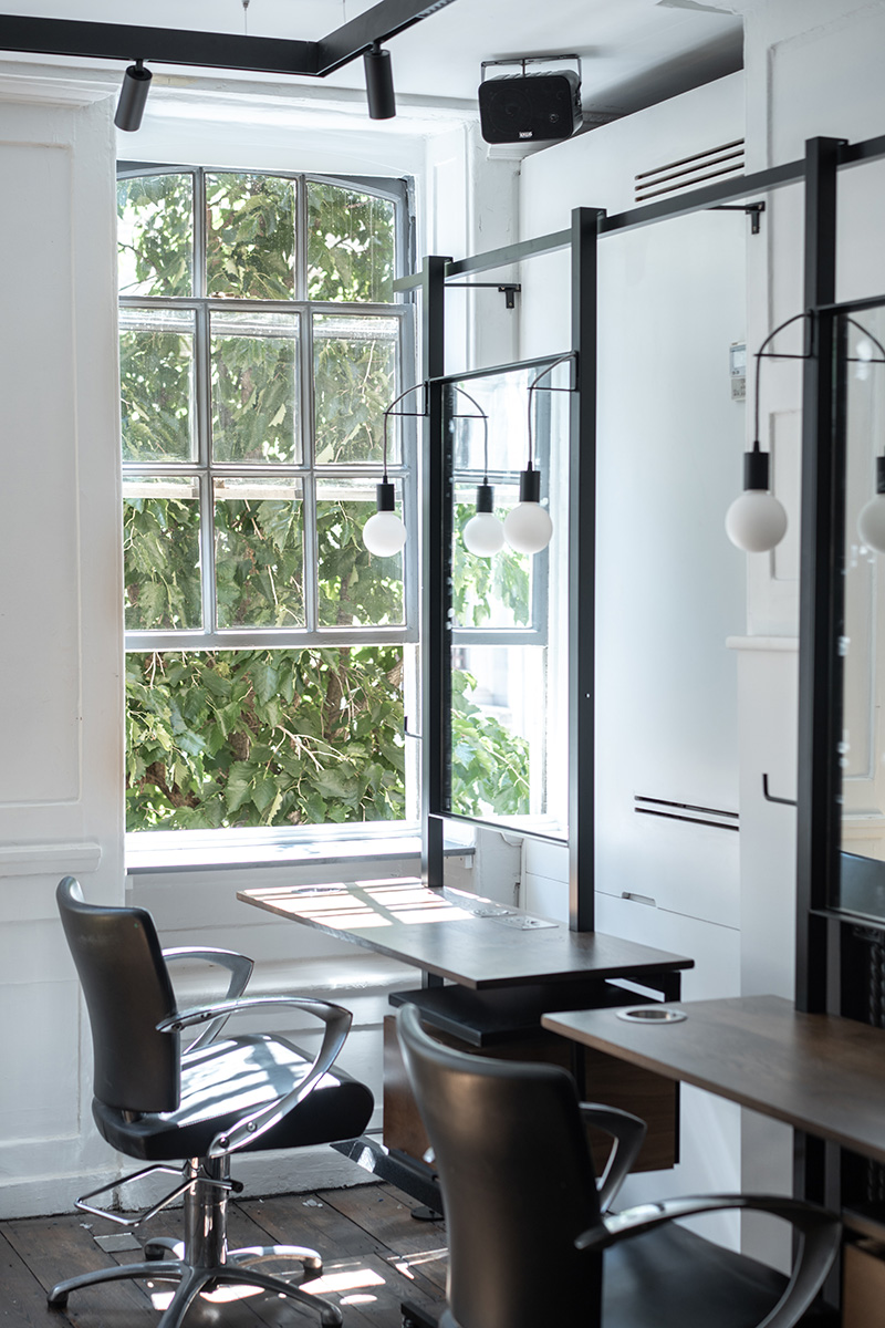 Buvo akivaizdu, kad salonui reikia visiško kapitalinio remonto, tačiau norėjosi išlaikyti pastato paveldo estetiką su niūriomis sienomis, židiniais ir gražiais laiptais. Dizaineris, su kuriuo dirbta ne vienus metus, padėjo sukurti namų atmosferą salone, nes juk dažnai kirpėjams salonas ir yra antri namai. Pakabinamos metalo konstrukcijos suformavo darbo vietas, jose įmontuota vieta įrankiams susidėti, įprastų vėžimėlių atsisakyta. Suprasdami, kad reikia tiek darbinio, tiek estetinio apšvietimo, salono savininkai ieškojo įvairių sprendimų ir apšvietimą įrengė ant metalinių konstrukcijų. Kadangi pastatas, kuriame įsikūrė salonas, yra saugomas paveldo objektas, daug ko nebuvo galima keisti, pavyzdžiui, grindys buvo nuimtos, sutvirtintos ir vėl sudėtos naujame salone.