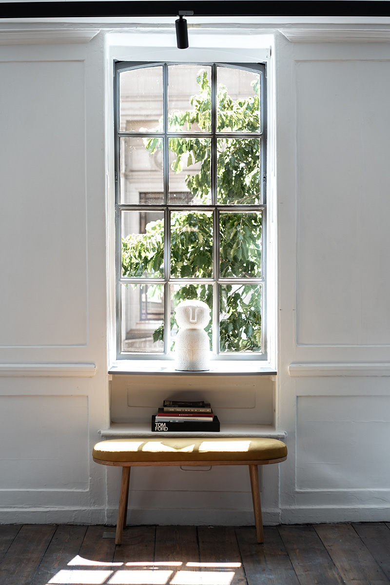 Kaip akcentas panaudotas didžiulis vitrininis langas, kuriame vietą rado augalų ekspozicija, suteikianti salonui charakterio. Kiekvieno augalo vazonas turi savo „šukuoseną“ ir tarsi kviečia pro šalį einančius žmones pasižiūrėti, nusifotografuoti ir pamojuoti salono darbuotojams. Greičiausiai tuoj visi vazonai turės vardus!